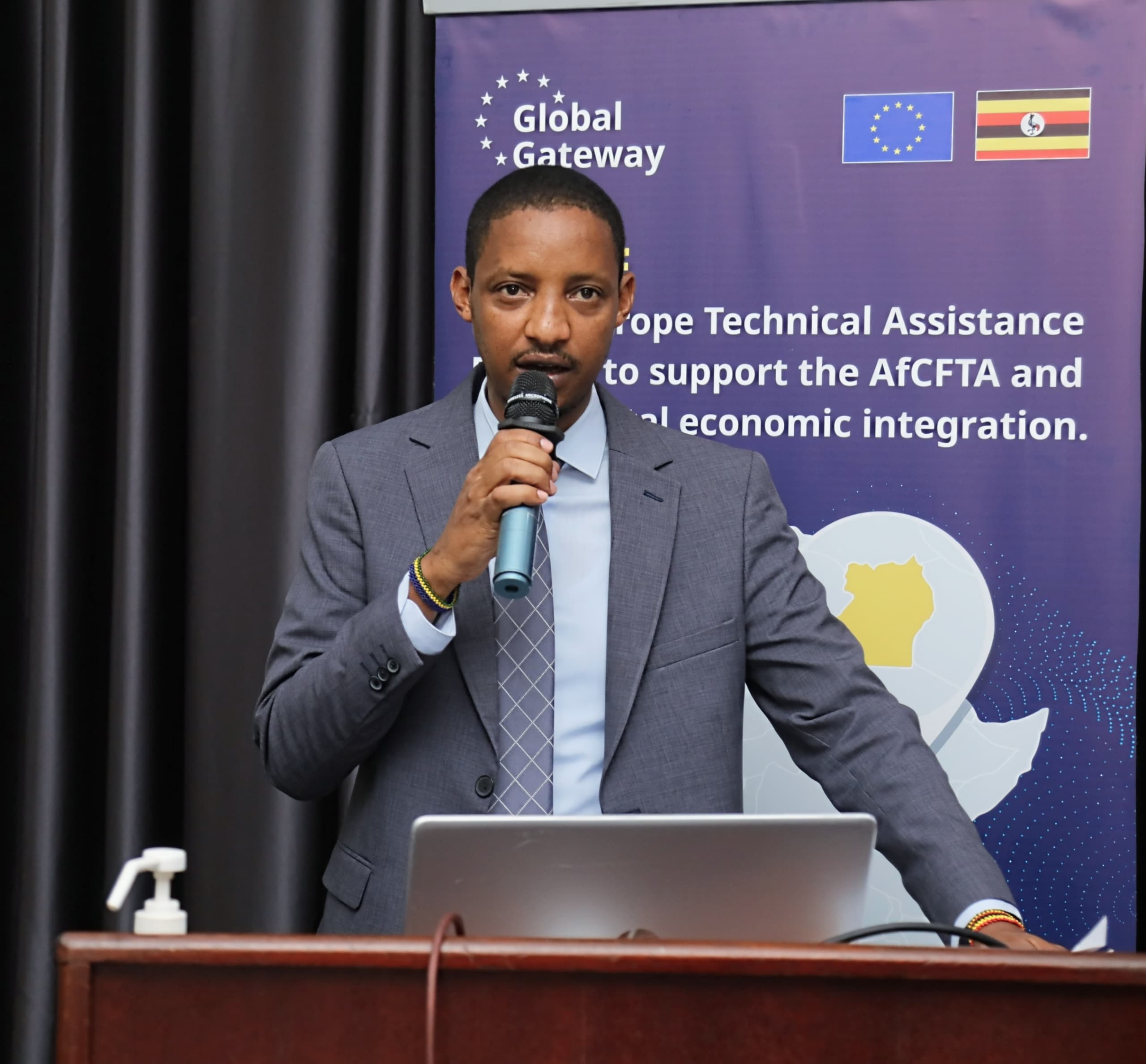 The workshop was officiated by Mr. Johnson Abitekaniza, Commissioner for Business Development and Quality Assurance at the Ministry of Trade, Industry, and Cooperatives who commended EABC and EU-TAF for raising awareness on AfCFTA and promoting intra Africa trade. Mr. Abitekaniza emphasized that compliance with international standards and proper packaging for the export market is not just a requirement but a necessity to access new markets. He called for more support for entrepreneurs to enhance product standards, packaging, and branding to access broader markets under EAC and AfCFTA.