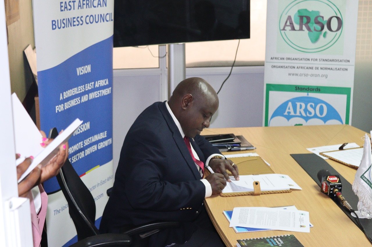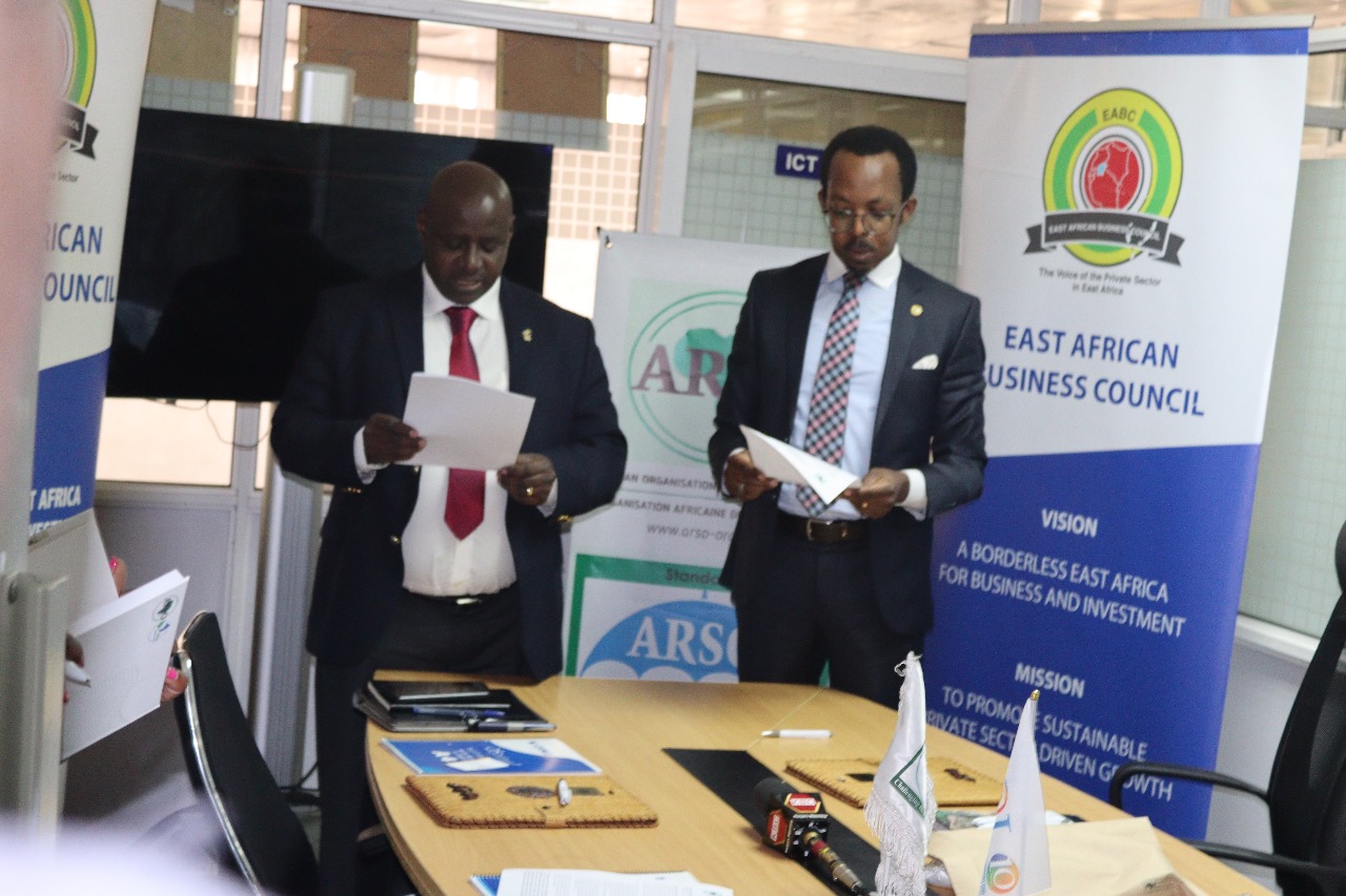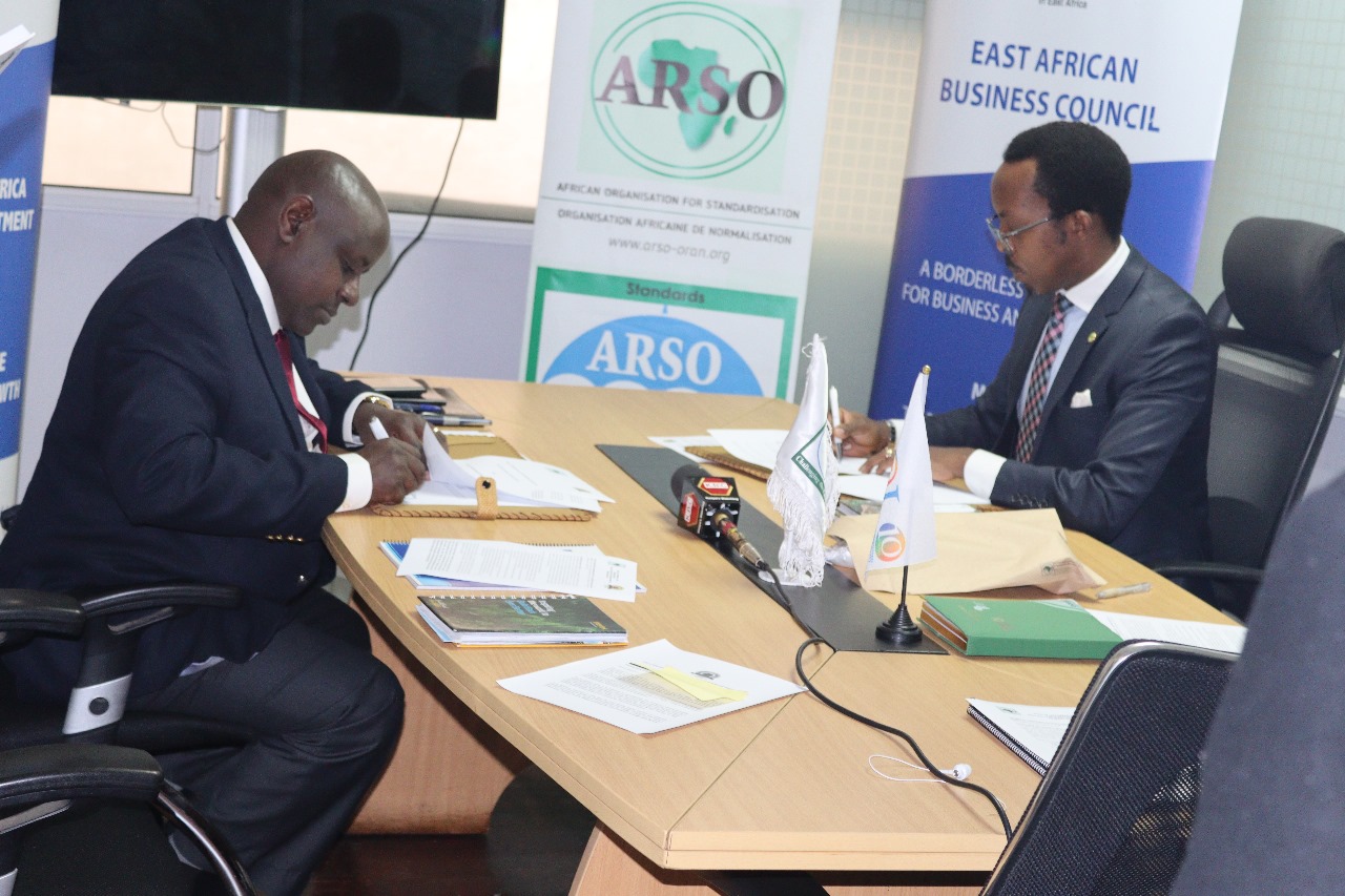 On Monday, December 4, 2023, the African Organisation for Standardisation (ARSO), an intergovernmental Organisation established by the African Union (AU) and the United Nations Economic Commission for Africa (UNECA) in 1977, signed a Memorandum of Understanding (MOU) with the East African Business Council (EABC). This MOU aims to create a collaborative framework to identify and mobilize Small and Medium Enterprises (SMEs), particularly those targeting youth and women in the East African Community (EAC) Partner States. The focus will be on Agri-business and other sectors (including the AfCFTA Trade Priority Sectors) with an emphasis on capacity building for the adoption and implementation of International and Regional Standards over a three-year period.