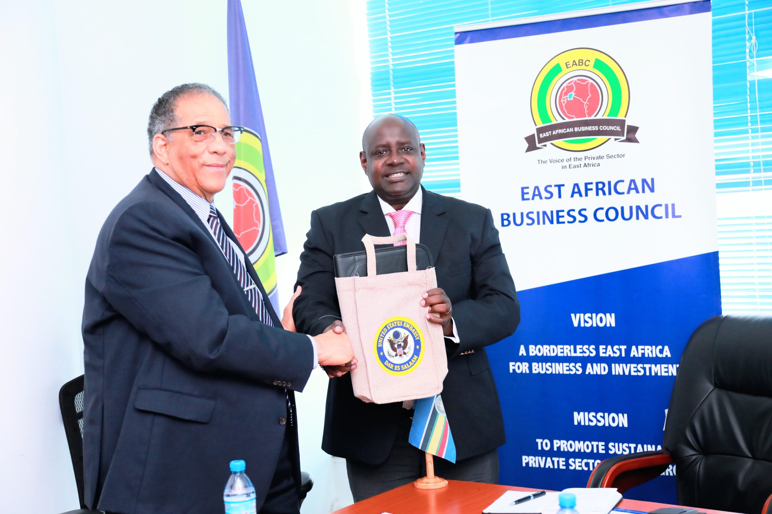Thursday, 18th May 2023, Arusha, Tanzania: – The Ambassador of the United States of America (USA) to Tanzania and accredited to the East African Community, Michael A. Battle, Sr., paid a courtesy visit to the East African Business Council (EABC). During the visit, he met with the Chief Executive Officer of EABC, Mr. John Bosco Kalisa and explored areas of partnership aimed at hastening the EAC integration agenda and strengthening East Africa-USA trade and investment ties.