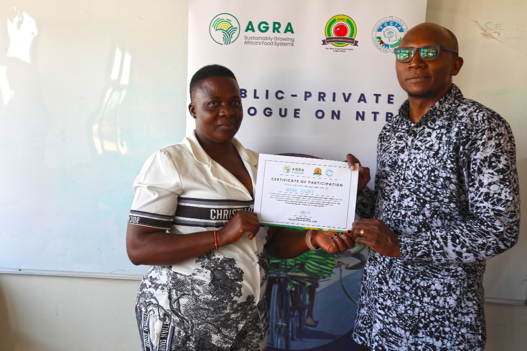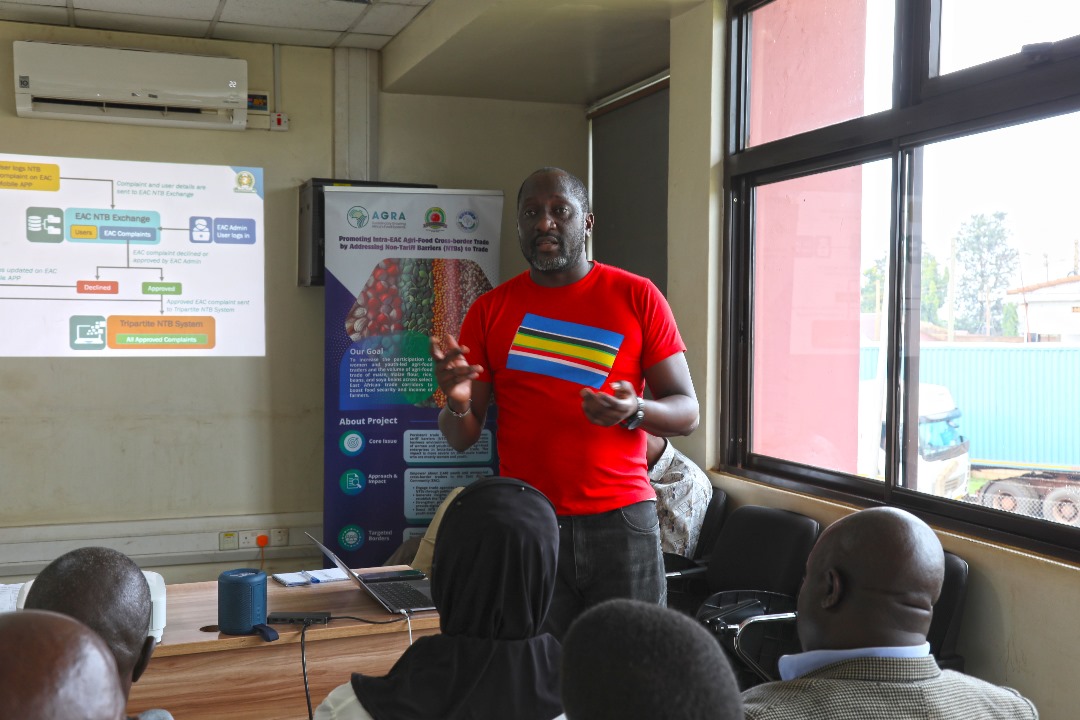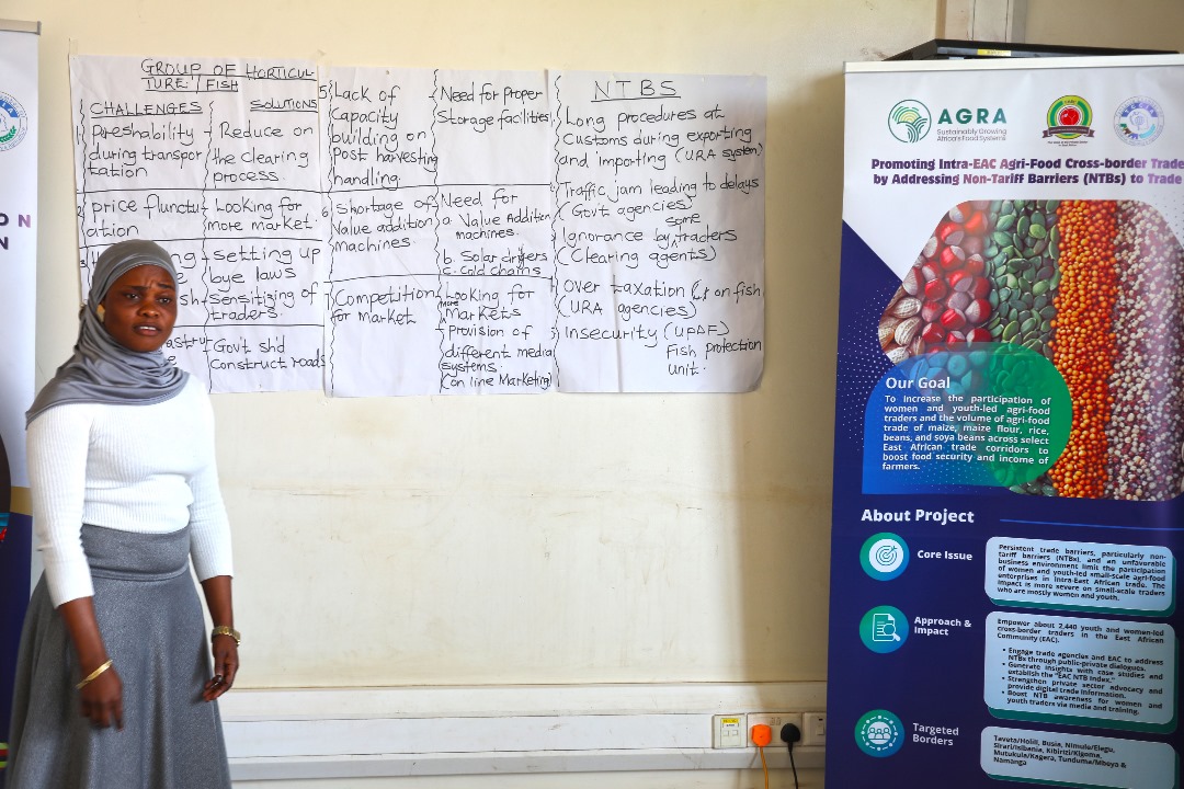 Busia, 5th December 2024 — During the East African Business Council (EABC) – AGRA Public-Private Dialogue on Non-Tariff Barriers (NTBs) at the Busia One-Stop Border Post, women and youth cross-border traders called upon the Governments of EAC Partner States to eliminate fees and charges imposed by Plant Health, Standards Bodies, Phytosanitary, Counterfeit, Biosafety, Port Health, and Agriculture Food Authorities to ease trading in cereals and horticultural products under the EAC Simplified Trade Regime (STR).