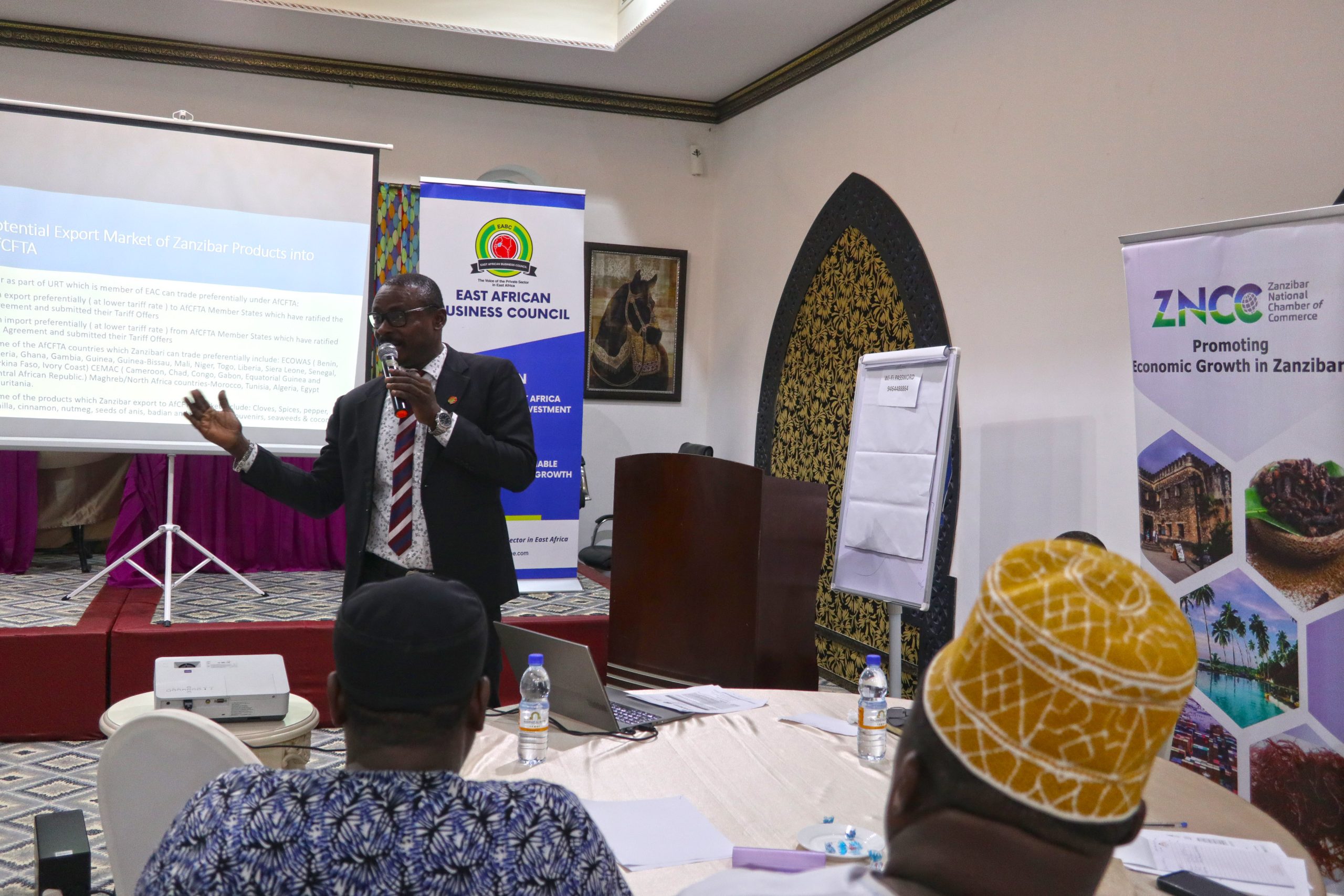 Mr. Adrian Njau, EABC Trade and Policy Advisor, stated that gradually eliminating tariffs on over 90% of African goods and removing non-tariff barriers opens export and import opportunities for Zanzibar businesses.